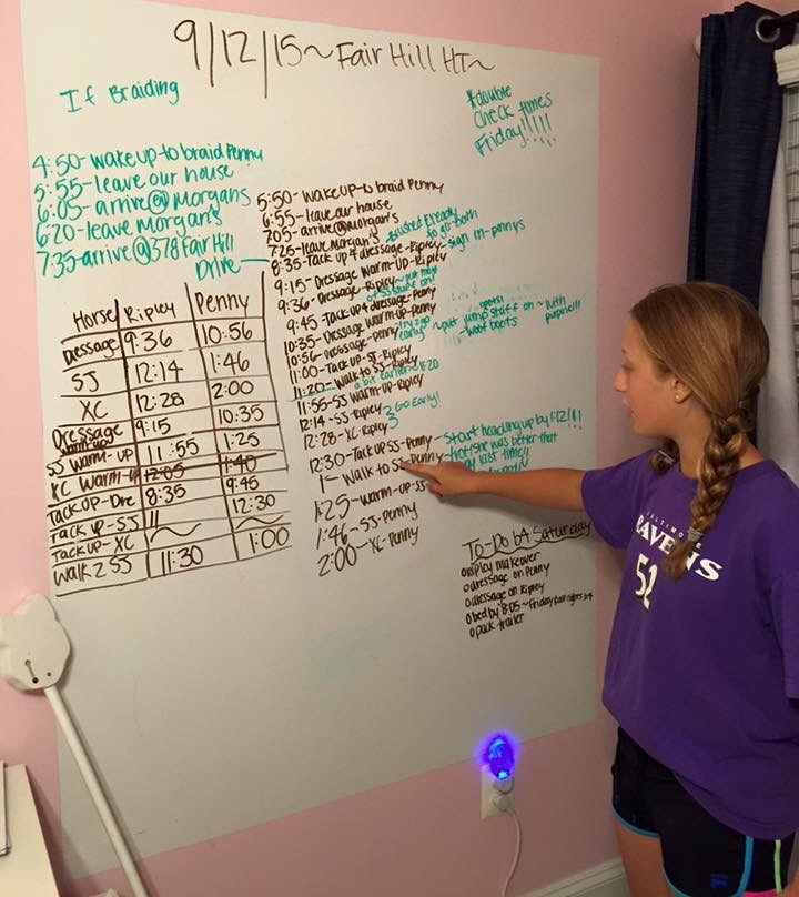 “One funny thing about Anna and riding is her extreme organization and scheduling. She has a huge dry erase board and will plan her time down to the minute. Just looking at that dry erase board tires me out, but Anna loves horses and likes to be busy and work hard so, for her, that’s what makes her happiest,” said Dawn.