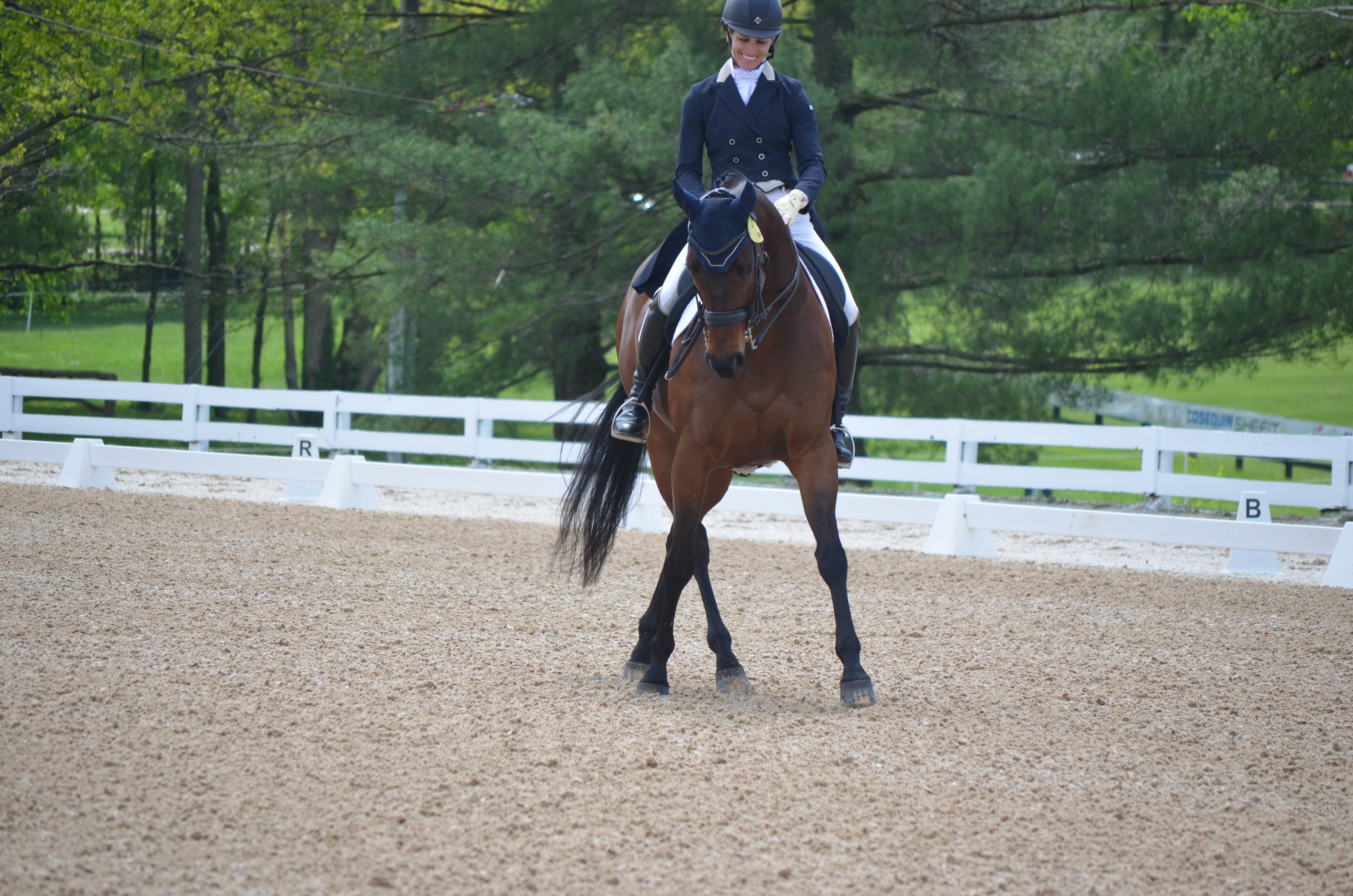 Erin Pullen, the test rider, is all smiles as she shows off her horse before she goes into the ring.