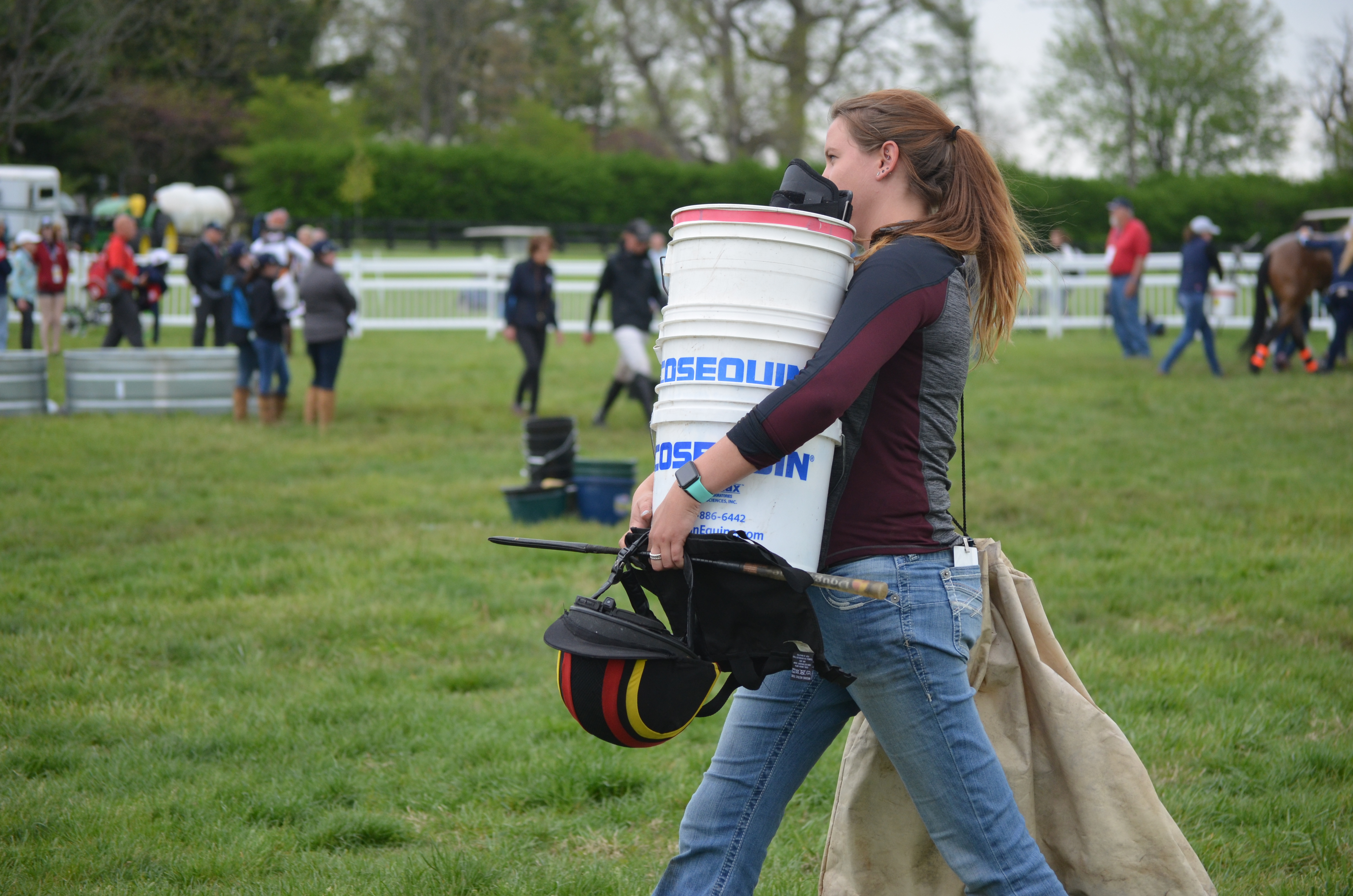 Watching dressage schooling on the rainy morning at the Horse Park.