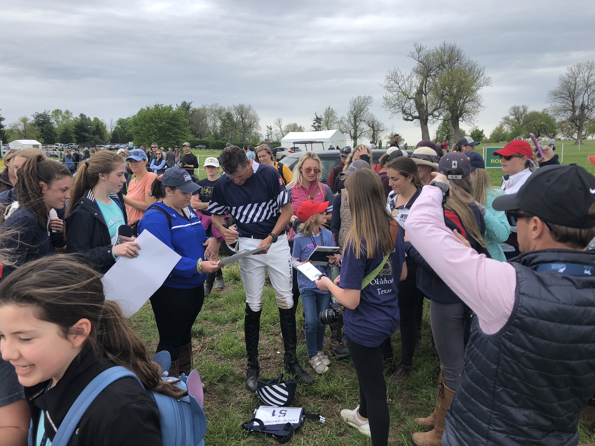 Boyd Martin was swarmed by fangirls on his way back to the barns after his clear xc round. He was very kind and stopped for pictures and autographs.
