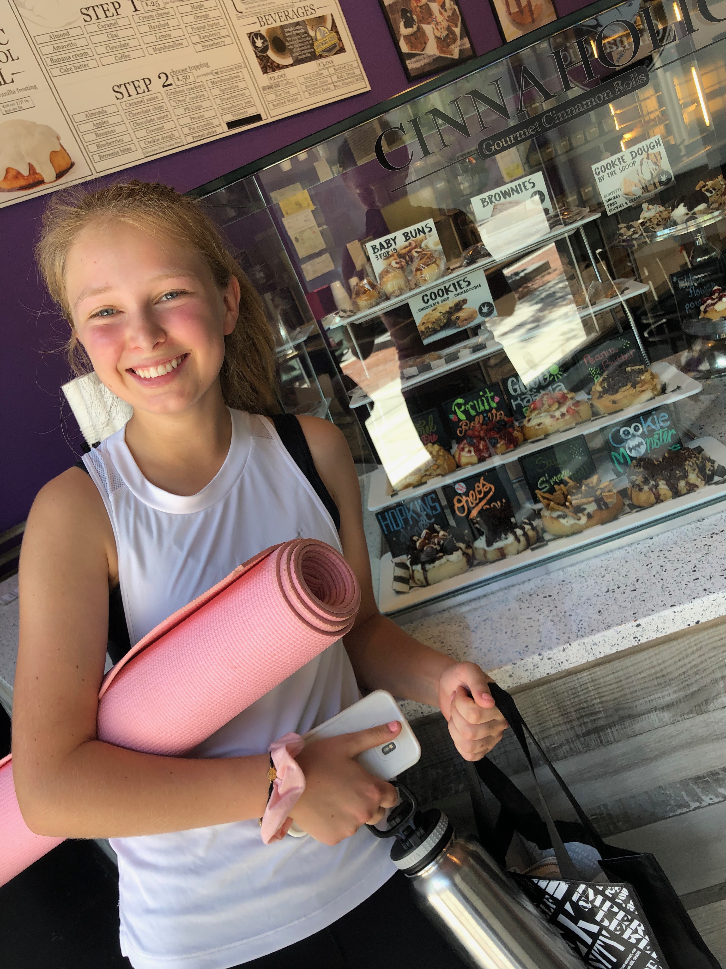 The studio was still warm from the last class, which was heated, and it actually felt nice as I was stretching. My mom and Taylor made fun of me because I was just doing normal stretches, not “yoga” stretches. But the joke’s on them because I was more flexible than them anyway!